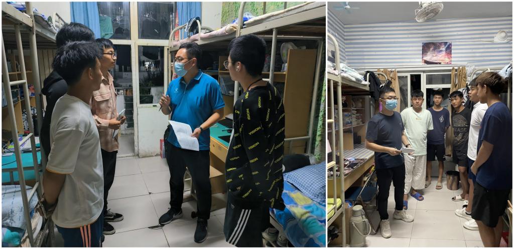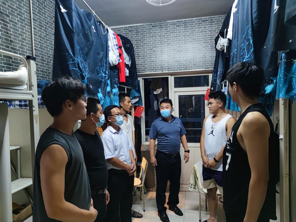 为落实学校疫情防控工作要求,筑牢校园安全防线,了解学生健康情况和思想动态,保障全体学生安全健康,8月31日,体育学院党委书记辛亚杰、党委副书记辛允东、办公室主任宋正义和全体辅导员共同走访学生宿舍,深入了解封闭管理期间学生的学习和生活情况。