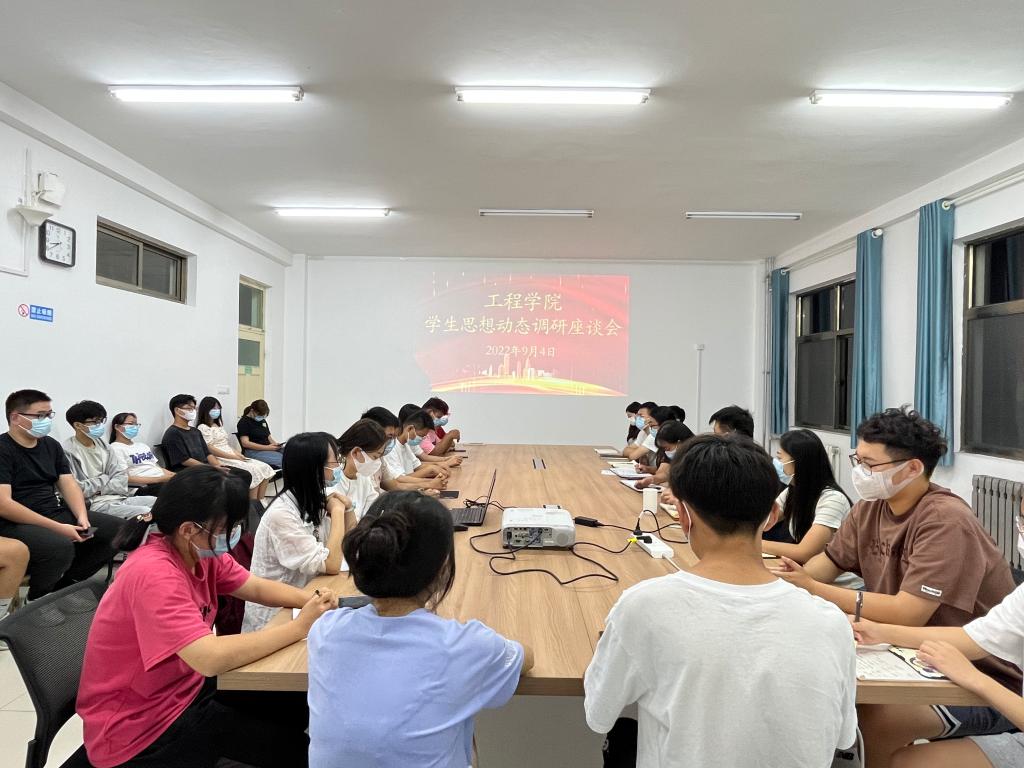 学期初开展思想动态调研座谈会是工程学院的传统。此次座谈会搭建起了师生面对面、零距离交流的平台,有助于及时掌握学生的思想动态和心理需求,为切实解决学生在学习、生活中遇到的各种困难和问题提供了第一手资料,也为提高学生思想政治教育工作的针对性和实效性奠定了基础。