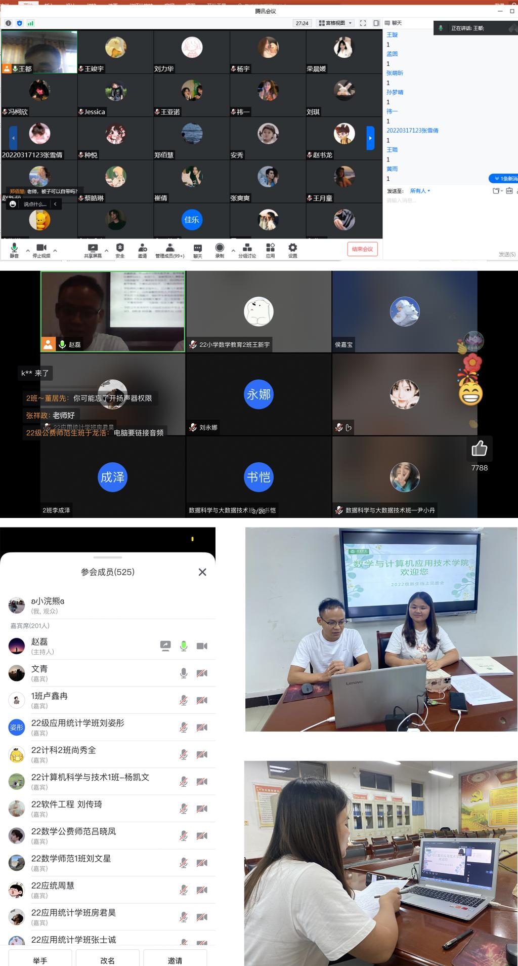 为进一步畅通学院与新生之间的沟通,更好帮助新生知晓入学前相关安排,引导新生了解开学要求、更好地融入大学生活,数学与计算机应用技术学院于9月5日,利用腾讯会议,针对不同专业,分批次举办了“云端暖心伴成长·家校携手同育人”新生及家长云上见面会。辅导员郑伟、王都、张颖、赵磊主持,学院九百余名新生和家长们参加。
