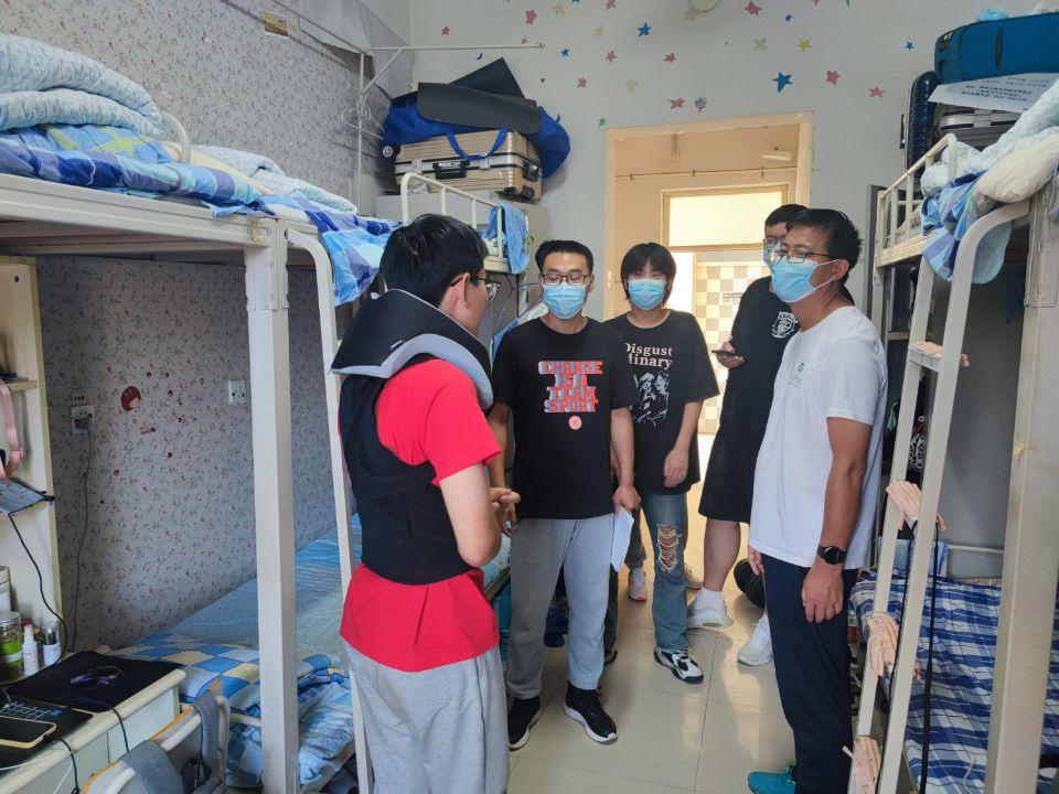 为进一步落实学院疫情防控工作要求,加强学生宿舍安全管理,9月4日下午,物理科学与智能工程学院党委书记孙文、副院长张营、党委副书记李洪波和全体辅导员前往学生宿舍,实地检查学生疫情防控、学习生活和宿舍安全等情况。