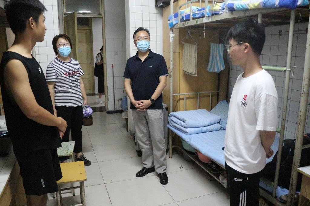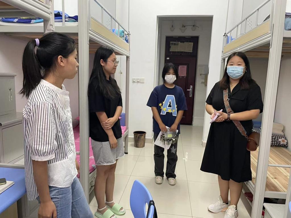 9月5日下午,人文与传播学院党委书记卫建勋,党委副书记李青,辅导员张甜、倪召欣、肖洁深入学生宿舍走访调研。