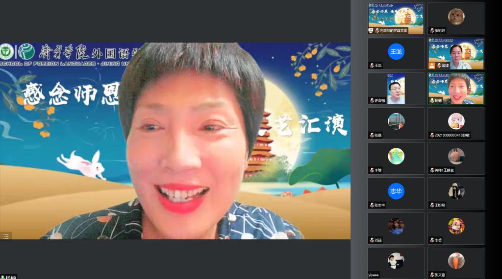 彩云追月,桂花飘香;月满中秋,情满校园。在中华传统节日——中秋佳节和教师节到来之际,9月9日晚,外国语学院举办“感念师恩,情暖中秋”线上文艺汇演,活动通过腾讯会议直播、短视频等方式立体呈现,外国语学院党委书记陆波,院长杨楠,教师代表、全体辅导员、老生及2022级新生参加,共同感受中秋佳节的幸福氛围。