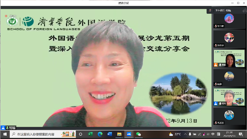 金秋的微风吹走了夏日蝉鸣,也带来了金桂飘香。9月13日晚,外国语学院举办青年教师发展沙龙第五期暨深入推进课堂改革经验交流分享会,该院院长杨楠、副院长张殿海、张颖以及全体教职工通过腾讯会议参加,本次活动由张颖主持。