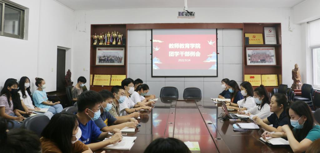 为进一步凝聚青春力量,彰显青年活力,夯实团学组织基础。9月14日下午,教师教育学院在会议室召开2022-2023学年新学期团学工作会议。团委书记杜鹃、全体辅导员及各团学负责人参加会议。