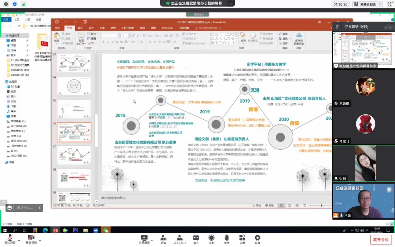 9月13日、14日,美术学院举办“企业名师进校园”系列学术讲座活动,以线上方式邀请泗水等闲谷艺术粮仓创始人赵岳枫、山东新思域文化发展有限公司董事张利进行专题讲座。美术学院党委书记杨晓青、副教授卢强主持,200余名毕业生参加。
