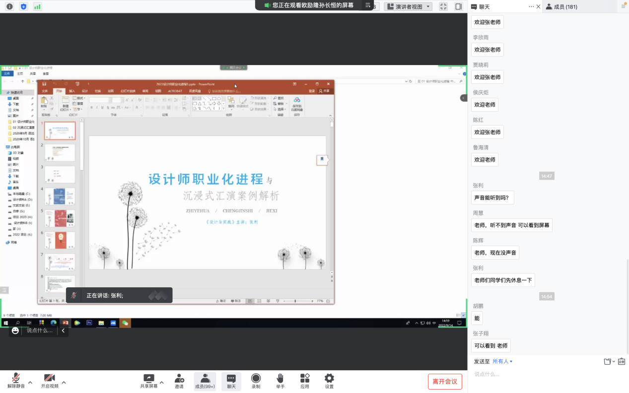 杨晓青总结时要求大家:要关注国家发展战略和发展动向,领悟学习“十四五“规划,将创意设计与社会需求相结合,提高创新创业能力。杨晓青表示:美术学院将按照“市场牵引、需求导向、资源整合、要素协同、产业辐射”的思路,发挥载体和平台作用,以“双创”人才创新创业需求为导向,进一步提升大学生的设计实践能力,帮助学生了解设计行业的动态变化、做好职业规划,对接企业需求和标准,向社会输送更多的“双创”专业人才。