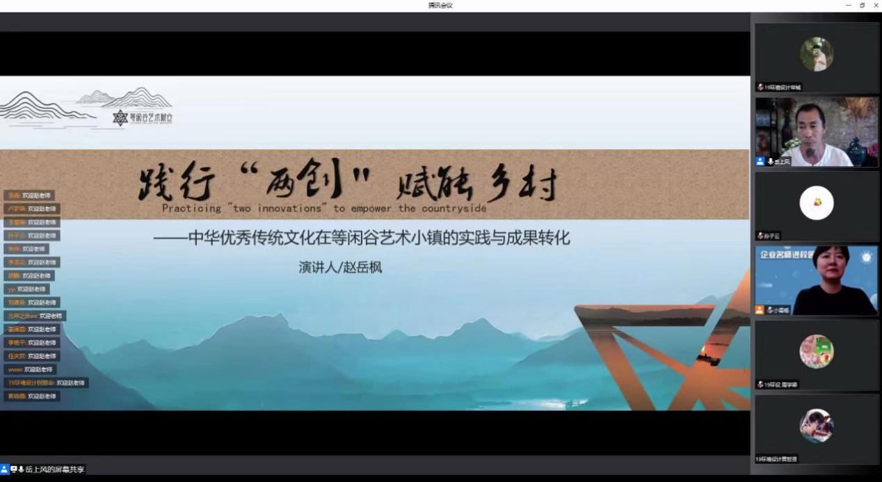 赵岳枫以“创意设计赋能乡村振兴”为主题,以等闲谷公司文化特质与基因构成为切入点,介绍了文化文创在小镇的实践路径与成果展现,提出了“艺术为粮,情怀为仓”的概念,阐述了“文化艺术为核心,农文旅发展为载体”的发展基调下,如何在乡村振兴战略的发展背景下,将传统文化与现代理念相融合进行创新。