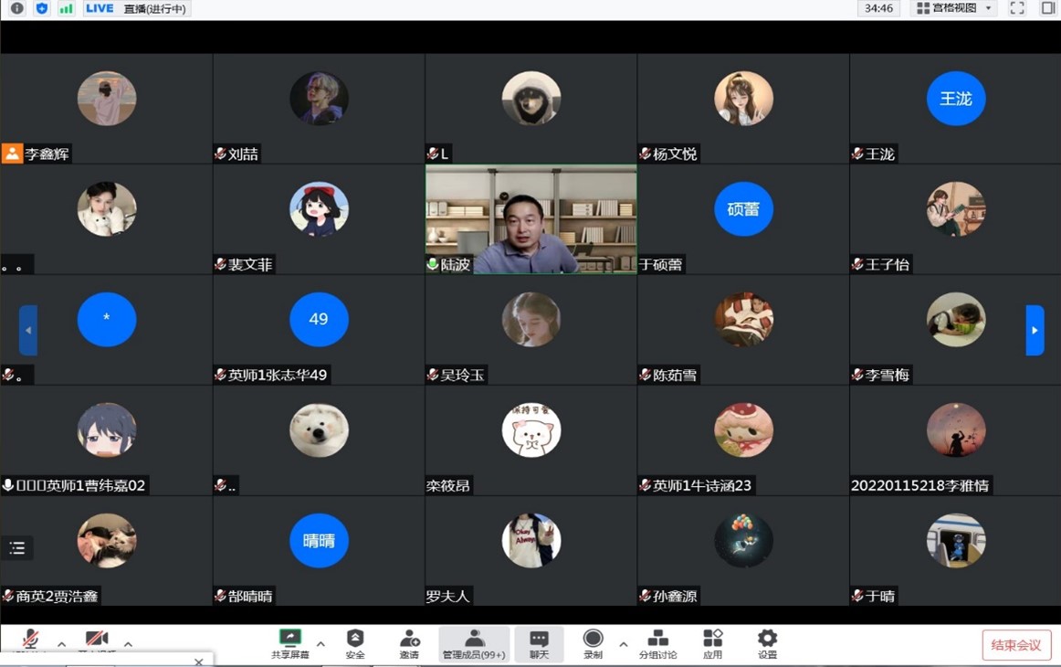 为做好2022级新生开学初教育管理工作,引导学生以崭新面貌开启大学生活,9月14日上午,外国语学院党委书记陆波通过腾讯会议为全体新生讲授开学第一课,2022级新生辅导员和全体新生参加。