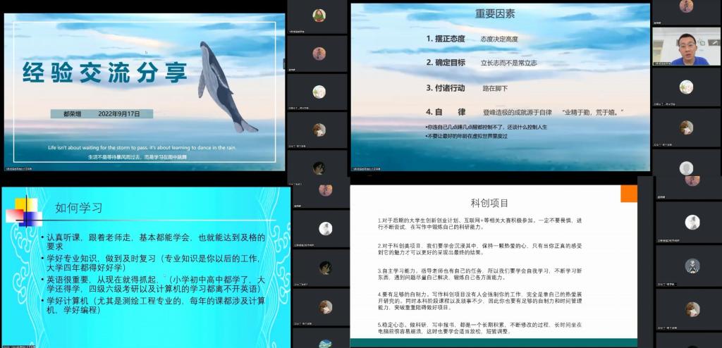 为教育引导2022级新生合理规划大学生活,树立明确学习目标,9月17日上午,工程学院依托腾讯会议开展了“榜样的力量”宣讲会。