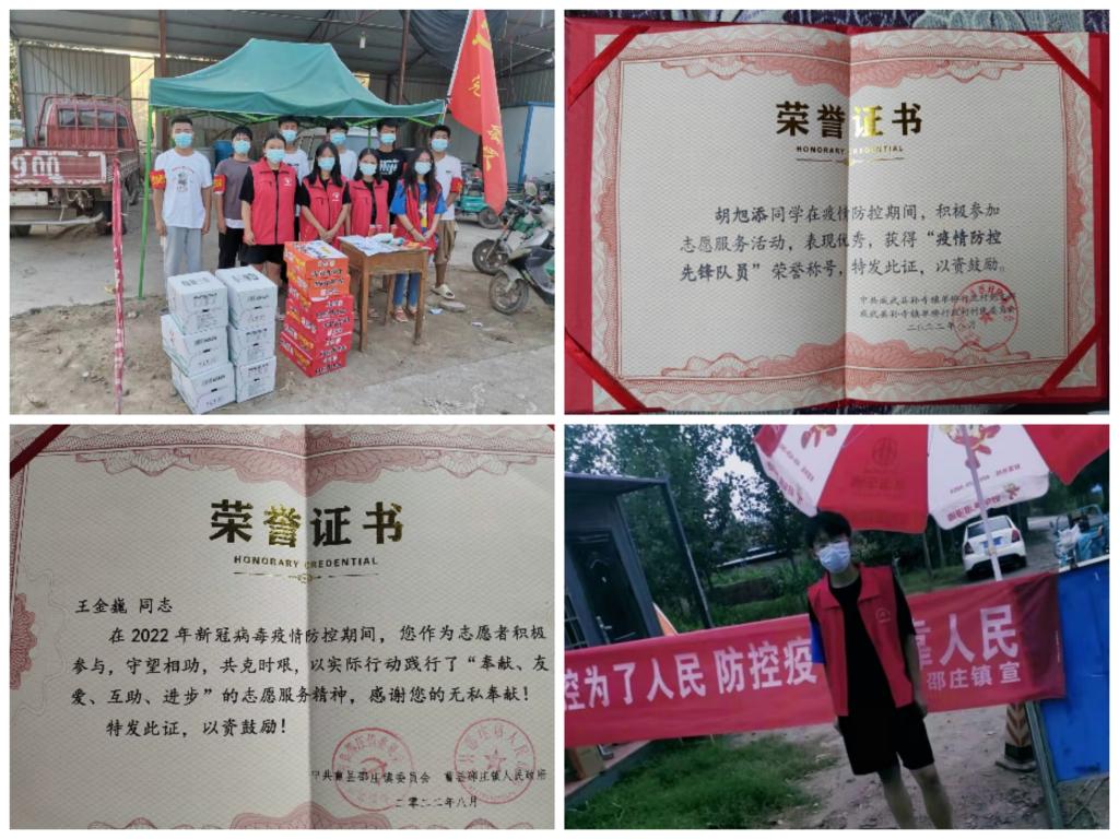 自疫情以来,菏泽市各地志愿者积极共同筑起保卫群众生命健康安全的钢铁长城,用行动和奉献扛起疫情防控的责任与担当。家住曹县的22级智能制造工程一班王金巍、成武县22级机械校企二班胡旭添,为行动不便的老年人上门进行核酸检测,疏导村民情绪,打电话核对村民做核酸进程,动员村民进行核酸检测。在村口轮班值岗,记录过往人员与车辆,测量人员体温。