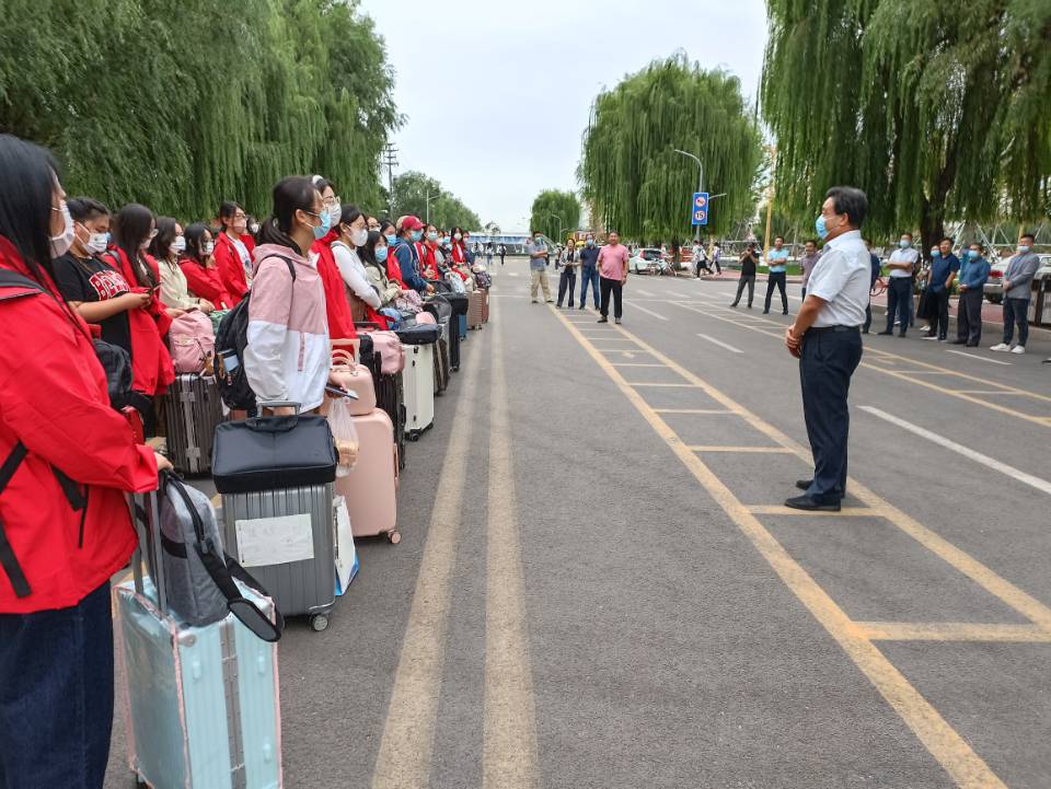 我校66名学子在党委办公室副主任史继军和初等教育学院副科级辅导员马道远的组织下,于20日清晨在学校东大门集合,人员和行李整齐划一,学校领导与各二级学院党委书记、辅导员站在启程队伍的两侧,送上了殷切的期望与祝福并欢送支教师生启航。