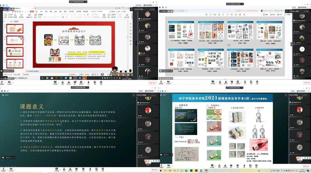 9月23日,美术学院组织2021级视觉传达设计(专升本)专业学生,开展“设计与实践——助力乡村振兴”项目方案线上汇报活动。该院党委书记杨晓青、任课教师张云婷、辅导员王姝彤、朱润昂参加。