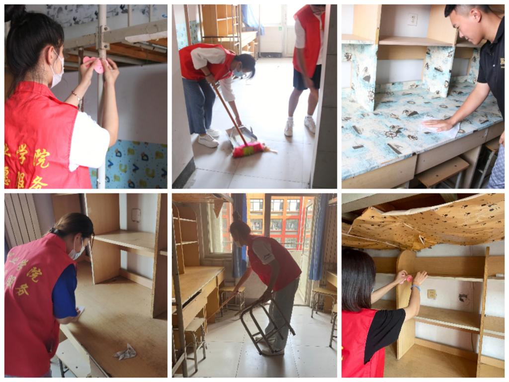 产业学院学生党支部组织学生党员、入党积极分子和志愿者开展本次党日活动。在征求公寓负责人同意之后,志愿者们到达各自指定地点,大家分工明确、齐心协力,对每间寝室的床铺、桌椅、地面、窗户、衣柜等进行了细致清洁,力争不留下任何一处死角,志愿者们将爱藏在了寝室的每个角落,在每个宿舍,志愿者们都留下了“爱的便利贴”,上面是学长学姐对新生的关爱与鼓励。同时保持寝室内外通风,在防疫要求下做到最好,使新生到校后能够享受安全、舒适、温馨的寝室环境。