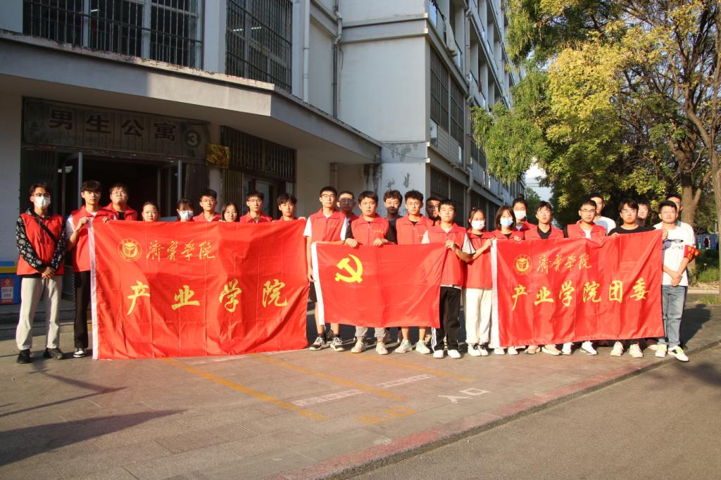 为迎接党的二十大的胜利召开,引导广大学生党员充分发挥先锋模范作用,在志愿服务中践行初心使命、体现责任担当,进一步培养学生的校园文明新风尚;同时为更好地迎接2022级新生,给萌新们提供良好的住宿环境,让新生充分感受到产业学院的温暖,9月26日,产业学院组织开展“党旗领航,情暖宿舍”主题党日活动。