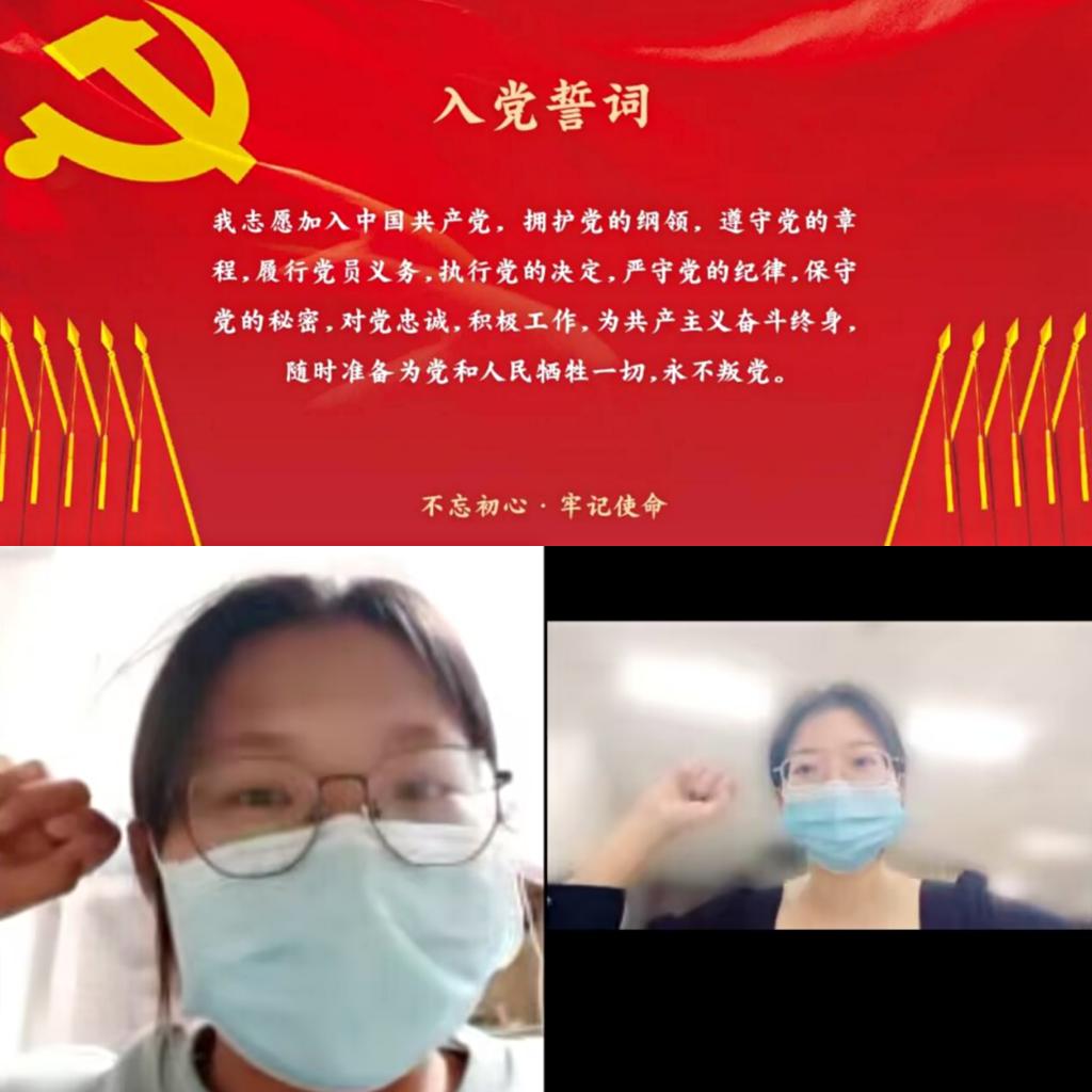会议伊始,学生党员张惠闵领学《中国共产党章程》并交流学习体会。张甜带领支部党员重温入党誓词,回忆入党初心。面对屏幕中鲜红的党旗,全体党员高举右手,庄严宣誓,神情庄重、精神饱满,用坚毅的目光、洪亮的声音,诠释对党的无限忠诚和为党的事业奋斗终身的坚定信念。