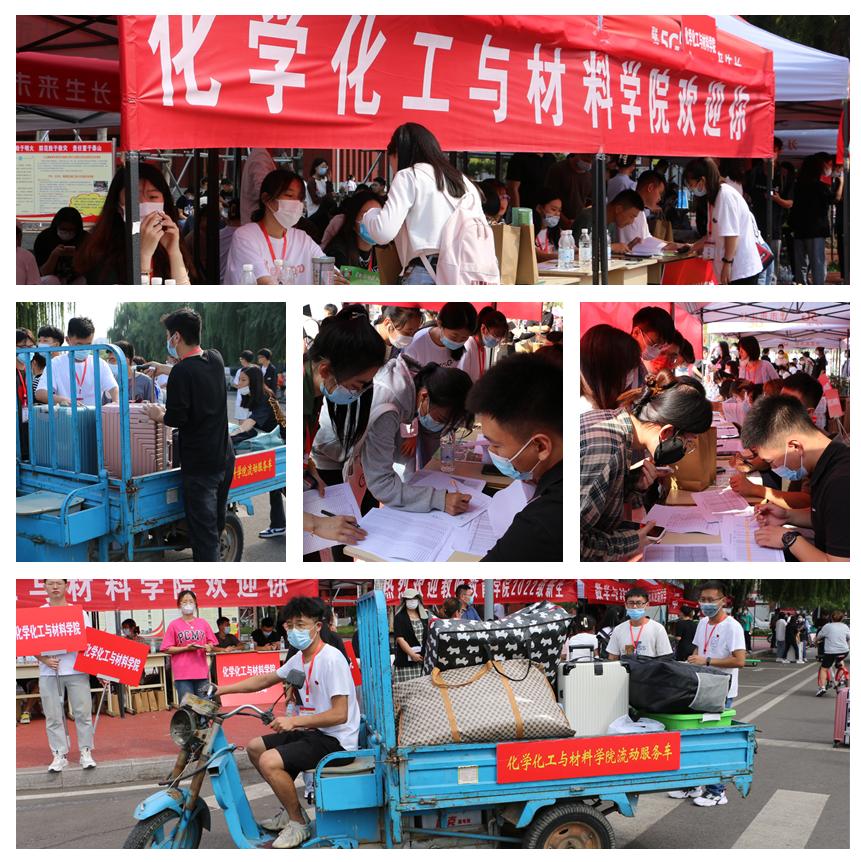迎新现场,新生经过核验身份、健康绿码、行程绿码、返校前48小时内核酸检测阴性证明环节,在做好个人防护的前提下有序入校报到。志愿者们手持指示牌,热烈欢迎新生,引领新生完成签到,领卡等过程,一个个佩戴统一工作证的志愿者为新生解答疑问、搬运行李、指引道路。一声声爽朗的“我帮你”,一句句亲切的“谢谢你”,拉近“心”与“新”的距离。他们用热情耐心的服务为到校新生传递着化学化工与材料学院的温暖和关怀。