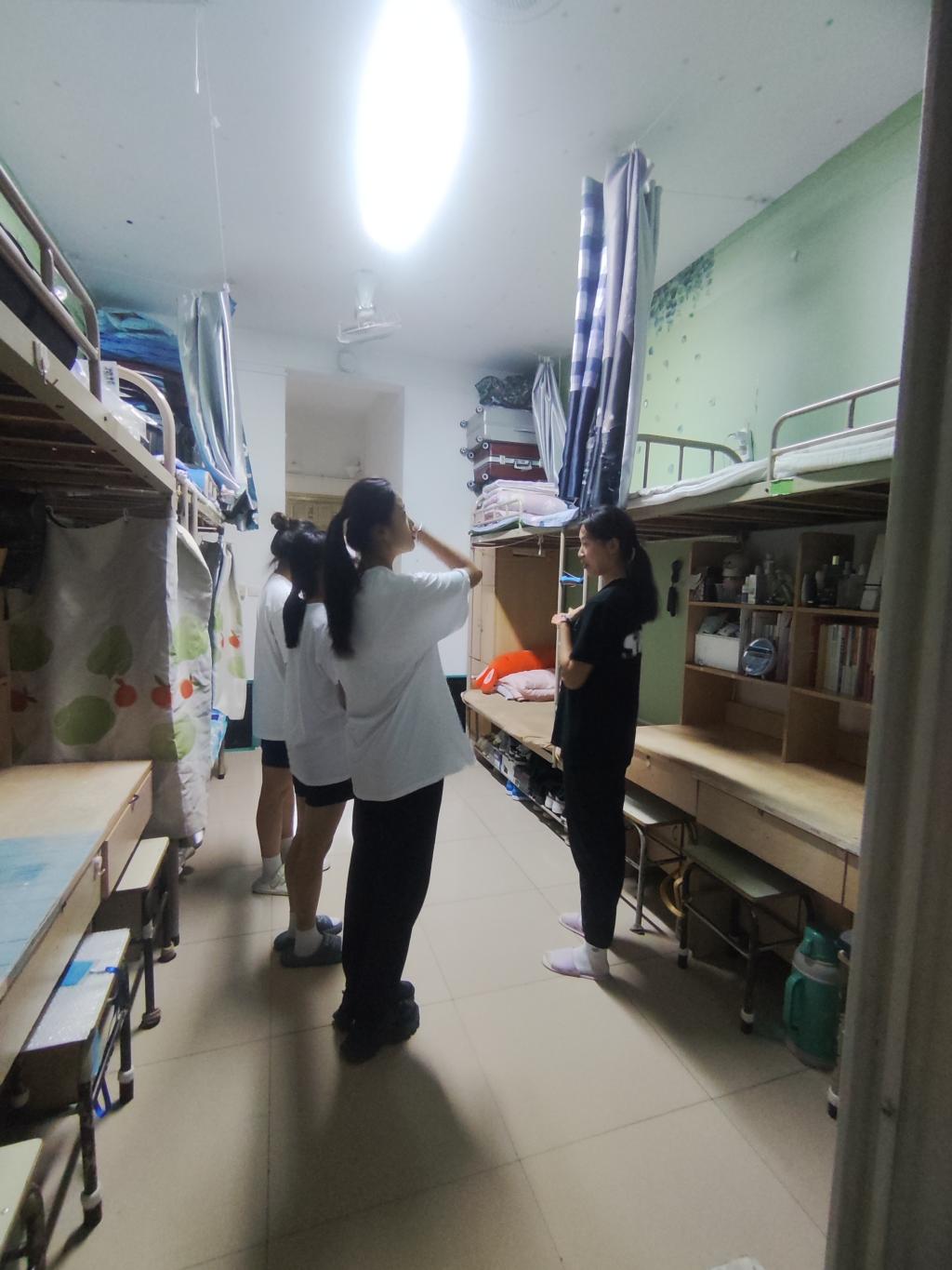 在辅导员马腾的带领下,2022级新生各宿舍代表到2021级规范化宿舍参观学习。参观过程中,宿管部成员、各规范化宿舍舍长对照《体育学院宿舍检查标准》,从桌面整理、地面清洁、物品摆放、用电安全等方面详细介绍了宿舍整理的方法和检查标准,对新生在宿舍整理中存在的问题进行了一一解答。