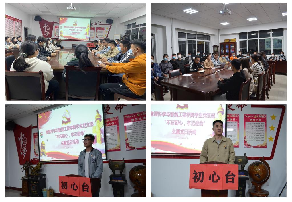 听党课升华理想,学党章坚定信念。10月7日晚上,学生党支部书记赵燕为全体学生党员讲党章,上党课。引导全体党员重温党章历史,了解我党成长历程,要求大家必须遵守党章的基本准则和规定。同时,结合物理科学与智能工程学院的发展历程和涌现的党员模范为该支部党员上了一堂生动的党课。党课结束后,该支部创新形式,化讲台为初心台,鼓励大家积极参与“我想对党说”活动。在现场,各位学生党员争先上台、踊跃发言,表达出对党的心里话:“永葆初心,牢记使命”“在党爱党、在党护党”“祝愿党的二十大胜利召开”等一句句简短却饱含深情的话语,流露出大家对党的无限热爱和美好祝愿。