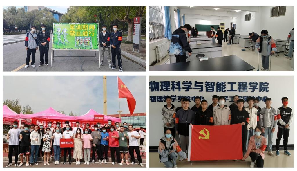 党员先锋作表率、志愿服务我先行。近日,为给同学们营造舒适的实验环境,让大家有更准确的实践感受,学生党员深入到物理科学与智能工程学院各实验室,同实验室管理员,对实验室内的地面、桌面、仪器等进行彻底清理和维护,有效提升了各实验室内的环境卫生;针对新生入学时行李众多、校园环境不熟悉等问题,该支部组建党员迎新志愿者服务队,做好新生行李搬运、方向指引等各项迎新工作;同时,该支部党员合理分工,前往军训场指定地点维持秩序,疏通车流人流,为军训中的新生温暖护航。