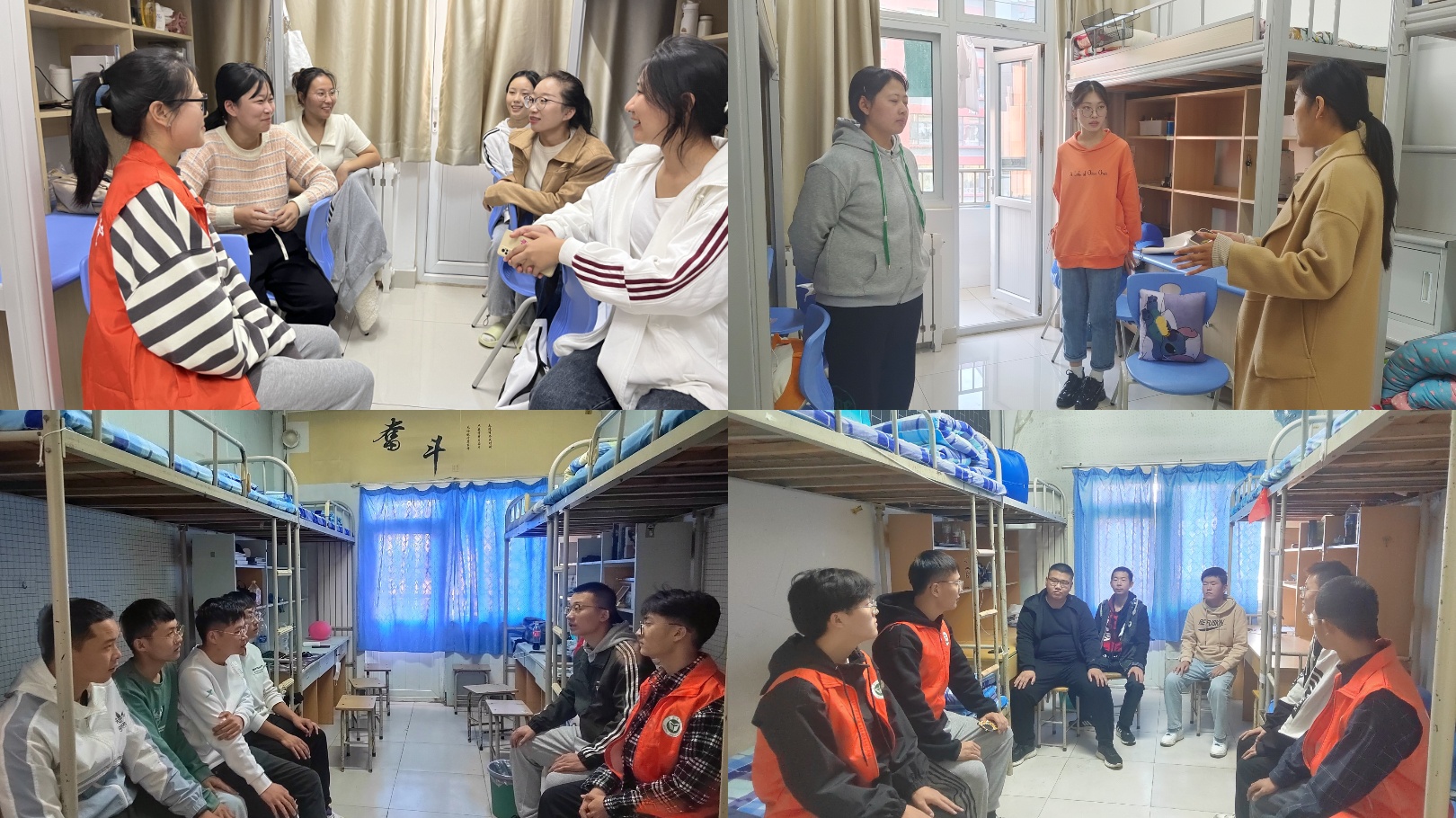 该院学生党支部组建“领航先锋队”,由学生党员、入党积极分子组成,陆续开展了迎新、核酸检测维持秩序等志愿服务活动。新生报到后,支部积极推进党建工作进宿舍,对领航先锋队队员与49间新生宿舍进行了“结对子”分配,每两个或一个队员联系服务于一间宿舍,定期深入宿舍,与新生进行交流,帮助新生解决学习、生活中的问题与困惑。10月8日下午,在辅导员老师的带领下,队员们集中深入联系宿舍开展了交流活动。队员们与新生进行密切交流,深入了解新生的思想动态,关切地询问新生自开学以来的心理状况、饮食等情况;提醒新生们疫情防控工作不能松懈,要时刻注意防护,理解并积极配合学校疫情防控工作;鼓励新生要合理安排时间,高质量完成学习任务,加强体育锻炼,保持宿舍环境卫生,团结友爱、互帮互助,以积极乐观的心态应对大学生活。队员们与新生互加微信好友,鼓励新生有问题主动寻求学长学姐帮助。