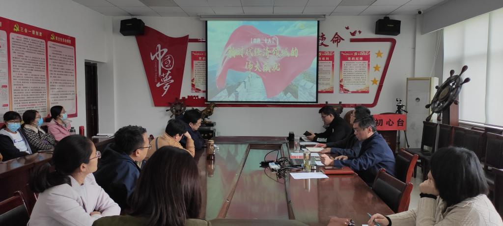 学院党委书记孙文为教工党支部全体党员讲了《新时代经济领域的伟大成就》的党课。孙文从新时代10年来经济领域最突出的理论成果——习近平经济思想和10年来经济领域最突出的实践成果——经济的跨越式发展两个方面阐释了取得了伟大成就。