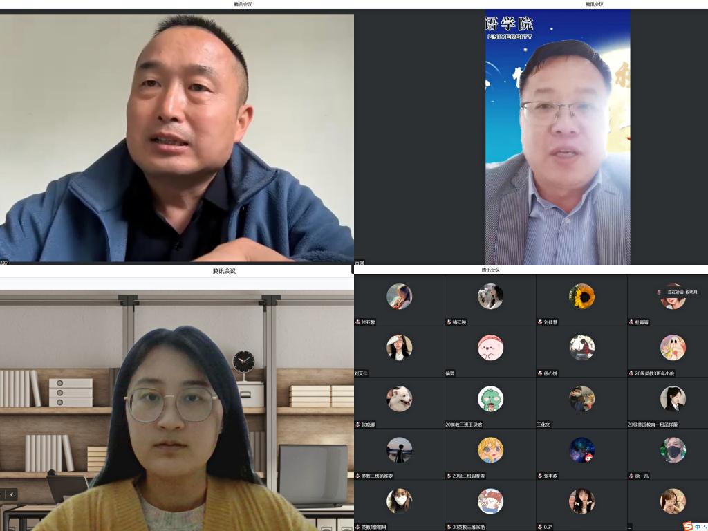 为进一步了解实习支教学生思想及实习支教状况,扎实推进实习支教工作,10月29日上午,外国语学院召开实习支教学生管理工作线上会议,该院党委书记陆波、副书记许言强及2020级英语教育专业全体学生参加,会议由辅导员段明月主持。