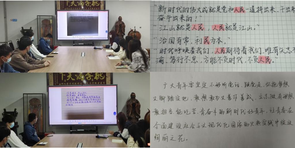 金晓靖同学说,近两个小时的报告中,习近平总书记百余次提及“人民”二字!“江山就是人民,人民就是江山”“不负时代、不负人民”……这些金句很暖心,中国共产党始终坚持以人民为中心的发展思想,不断实现人民对美好生活的向往,我深刻感受到我们党满满的民生情怀和为民初心。