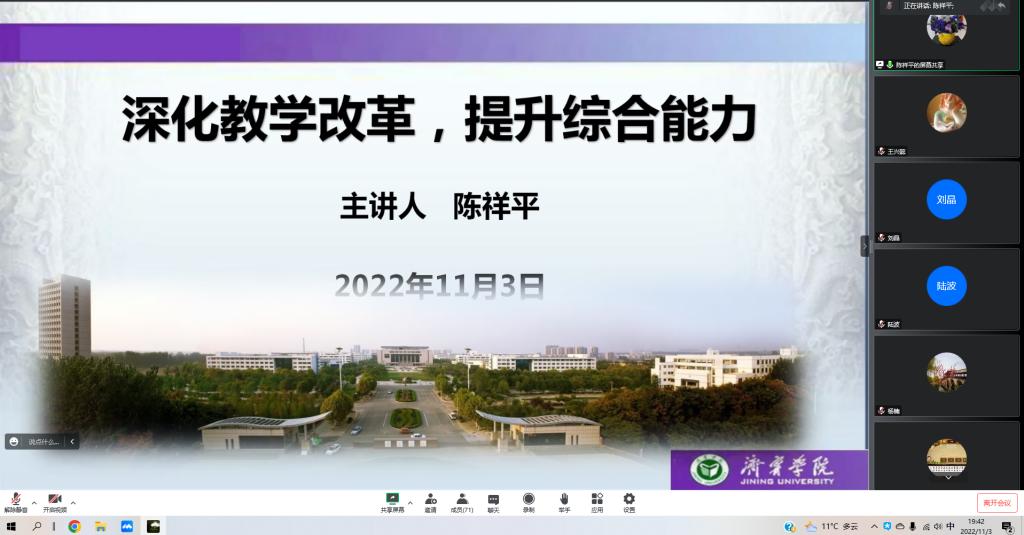 教师发展沙龙作为该院促进教师专业发展的特色活动,第六期邀请数学与计算机应用技术学院陈祥平教授为分享嘉宾。陈教授深入浅出、用诙谐幽默、富有生活气息的语言从资源建设与团队建设、教学模式与教学方法、教学评价及课程思政、融合共建与创新提升四个方面做了《深化教学改革,提升综合能力》主题讲座。全体教师在聊天区纷纷表达了对陈教授的敬佩和感激,互动交流教师围绕如何在教学过程中培养学生发现问题、提出问题、分析问题和解决问题的能力,培养学生创新能力等方面同陈教授做了深入交流。