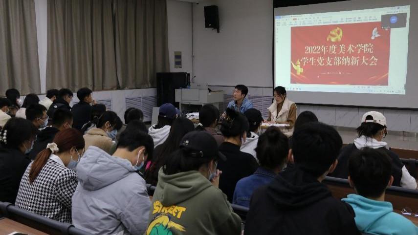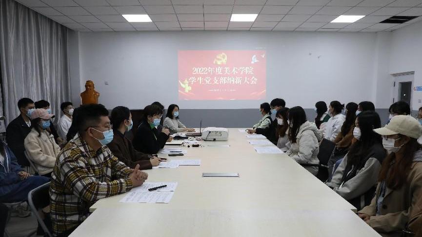 11月11日,美术学院学生党支部于6号楼B117召开党员纳新大会,美术学院党委书记杨晓青、副书记孔翠、组织员张琦出席会议,学生支部全体成员参加。会议由学生党支部书记张笑主持,济宁应用型人才培养基地设立分会场。