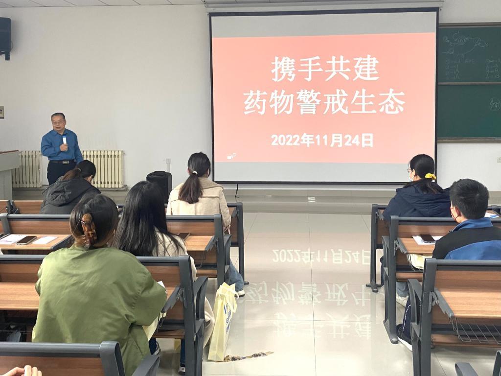该讲座以“药物警戒生态”为主题,从“药品警戒”、“药物的不良反应”、“自我药疗”三部分,通过对药品警戒制度相关概念、相关案例介绍及药品不良反应对人体健康的重要性的讲解和“小病去药店,大病上医院”、“积极的自我药疗”等理念宣讲,让学生更加科学地认识到药物与健康的关系。