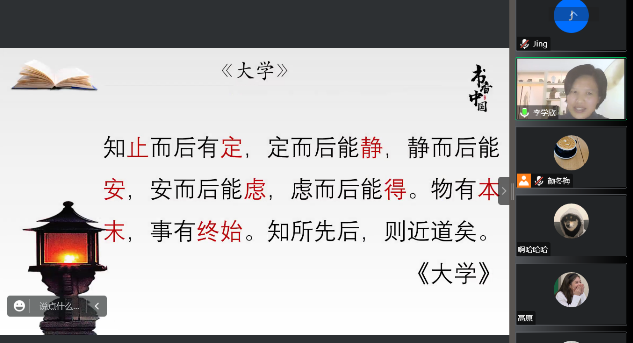 整个讲座中,李老师和蔼可亲、引经据典、娓娓道来,既有对儒家经典思想的深入解读,又有对儒家人物的生动分析,真正做到了对儒学的融会贯通。本次讲座不仅给外院师生带来了一堂生动的国学课,更是带来了一场思政盛宴。让外院师生深刻感受到中国优秀传统文化的博大精深、以及儒学对当代中国人的思想启迪和价值引领。外院学生纷纷表示:作为外语人,一定要学好外语,讲好我们中国的故事,让儒家思想的光芒照耀世界。