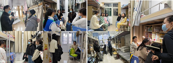 本次检查主要围绕宿舍内使用大功率电器、私拉乱扯电线、存放易燃易爆物品、管制刀具、宿舍抽烟等用电和消防安全问题进行。通过排查整体状况良好,对少数宿舍存在的安全隐患,现场教育并立即整改。在排查过程中,辅导员老师与同学们进行了交谈,详细了解学生在疫情封控时期的生活状况、学习备考情况,叮嘱同学们要遵守校园疫情防控规定,提高自我防护意识,科学佩戴口罩,尽量减少外出,保持宿舍日常通风和卫生,养成良好生活习惯。