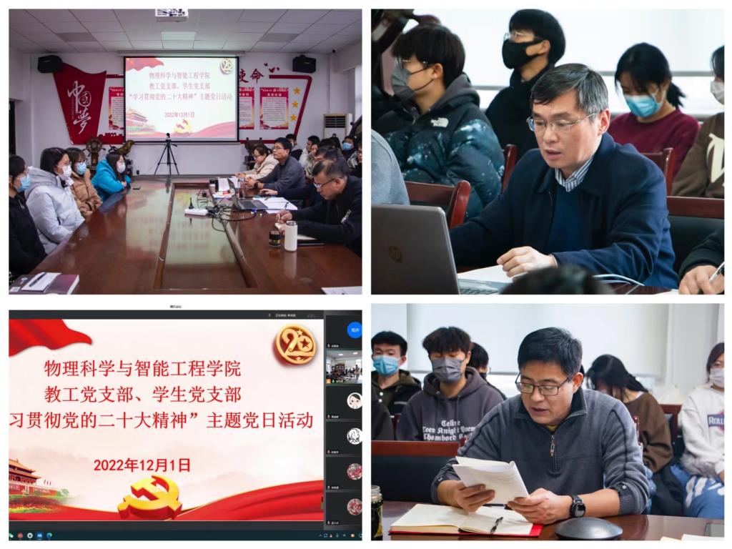 为深入学习领会党的二十大精神,进一步营造宣传贯彻党的二十大精神的浓厚氛围。12月1日下午,物理科学与智能工程学院教工党支部、学生党支部采用线下和线上相结合的方式,联合开展了“学习贯彻党的二十大精神”主题党日活动,学院全体教工党员、学生党员参加了主题党日活动。