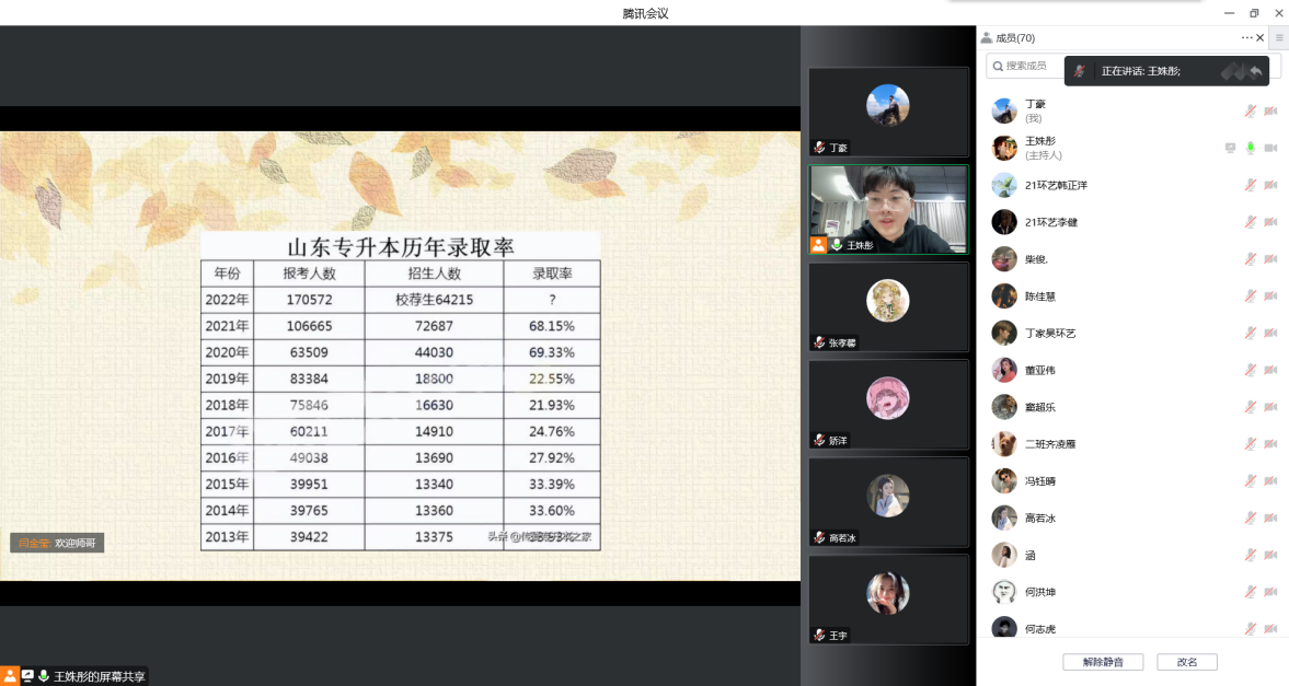 为切实加强就业服务工作,12月4日晚,美术学院通过腾讯会议举办专升本经验分享会。会议由辅导员王姝彤主持,2020级环境艺术设计专业全体学生参加。