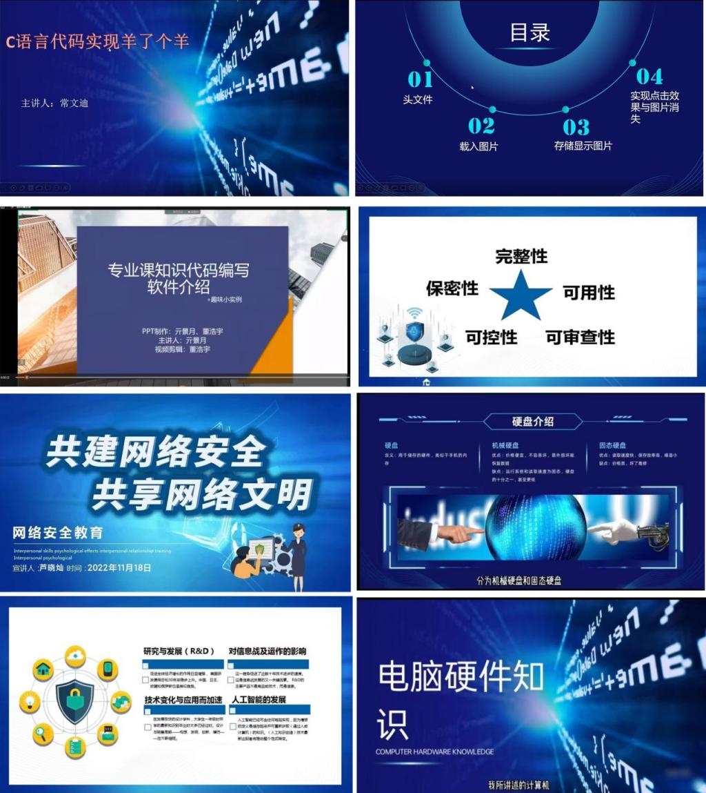 经过前期宣传,同学们踊跃报名参加,最终提交了近50份作品。参赛同学聚焦计算机网络科技,自选主题,制作时长8分钟的讲课微视频。同学们自发组建团队,搜集资料、制作课件、打磨讲稿、剪辑视频。讲解内容更是各有特点、百花齐放,兼具趣味性、专业性、科普性,例如网络计算机技术发展历史普及、不同的操作系统的优缺点、计算机安全与防护、怎样自主装配电脑、当前计算机相关专业的就业前景等,与同学们的切身生活和学习实际紧密结合。经过评审,最终产生2名一等奖、4名二等奖、8名三等奖和若干优秀奖。优秀作品在学院官方微信和抖音平台进行推广。