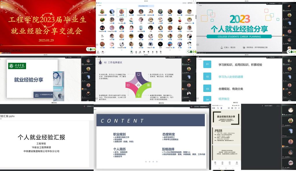 为扎实有效推进2023届毕业生就业创业工作, 工程学院于1月29日晚依托腾讯会议举办了2023届毕业生就业经验分享交流会。