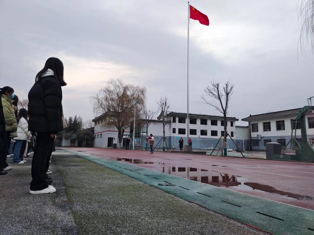 伴随着激昂雄壮的《义勇军进行曲》,鲜艳的五星红旗冉冉升起。同学们庄严肃立,向国旗行注目礼。一个个坚定的眼神,流露出对祖国无限的热爱和崇高的敬意。随后,优秀学生代表霍文轩、赵丽莎分别以“明天的我们要更加精彩”、“以梦为马,不负韶华”为题进行国旗下讲话。她们倡议,作为一名青年学子,应当珍惜青春年华,砥砺前行,用优异的成绩回报社会,争做有理想、有本领、有担当的时代新人。