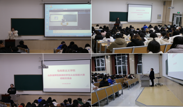 2月22日晚,马克思主义学院在9号楼D102举行山东省师范类高校学生从业技能大赛经验交流会,邀请思想政治教育专业2019级本科班三名获奖同学周方洁、刘璇、闻雪做经验分享。马克思主义学院副院长沙世蕤出席交流会,2020级、2021级同学参加本次交流会。会议由辅导员姚海生主持。
