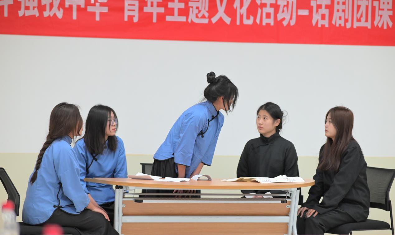 本次主题团日开展了“话剧团课”展演,12支展演队伍通过讲、诵、演等鲜活形式,将一个个艰苦奋斗的故事搬上舞台,进行了一次直观的理想信念教育和爱国主义教育。《觉醒》以“五四运动”为背景,描绘了客观、饱满的人物群像,致敬中国共产党革命先驱的崇高理想和卓越贡献。《红船精神》以中共一大13位代表为重点,展现了中国共产党从浙江嘉兴南湖一条小船上诞生,承载着历史选择、民族希望出发,劈波斩浪驶向辉煌。《狼牙山五壮士》再现了马宝玉、葛振林、宋学义、胡德林、胡福才5位英雄为掩护机关、主力部队和群众转移,英勇顽强抗击日伪军,直到子弹打光,舍身跳崖的英雄事迹。《绣红旗》演绎了革命者庆祝胜利、迎接解放的激动喜悦之情,集中体现了革命者对党无限热爱、对革命事业无比忠诚的主题。《青年志》分享了黄文秀、杜富国等青年榜样事迹,传颂用奋斗谱写的青春赞歌。从“愿以吾辈之青春,守护这盛世之中华”的披荆斩棘,到“青年兴则国家兴,青年强则国家强”的乘风破浪,再到“请党放心,强国有我”的铿锵誓言,舞台上,同学们声情并茂、富有感情的表演赢得线上线下观众的阵阵掌声和点赞。