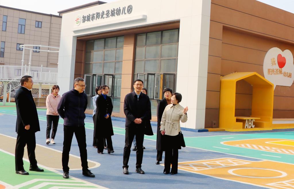 王朝杰一行先后实地参观了集团旗下的钢山幼儿园、华庭幼儿园、千泉幼儿园以及阳光圣城托育中心。参观中,王朝杰高度赞赏了集团先进的教学理念、优越的设施条件、一流的管理服务,并对探索实施品牌化、市场化、本土化的幼教办学模式给予高度认可。