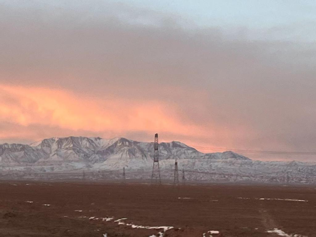 从山东跨越四千五百多公里奔赴新疆,从平原走到沟壑纵横的黄土地,再行至高山草甸,最后至荒漠。我们看到了瑰丽的朝阳冉冉升起,彩霞像缕缕金丝浮游中天。看到了朝阳笼罩下的祁连山,想到徐凌《关山月》星旗映疏勒,云阵上祁连。大自然的鬼斧神工令我们惊叹,祖国的大好河山让我们热爱。