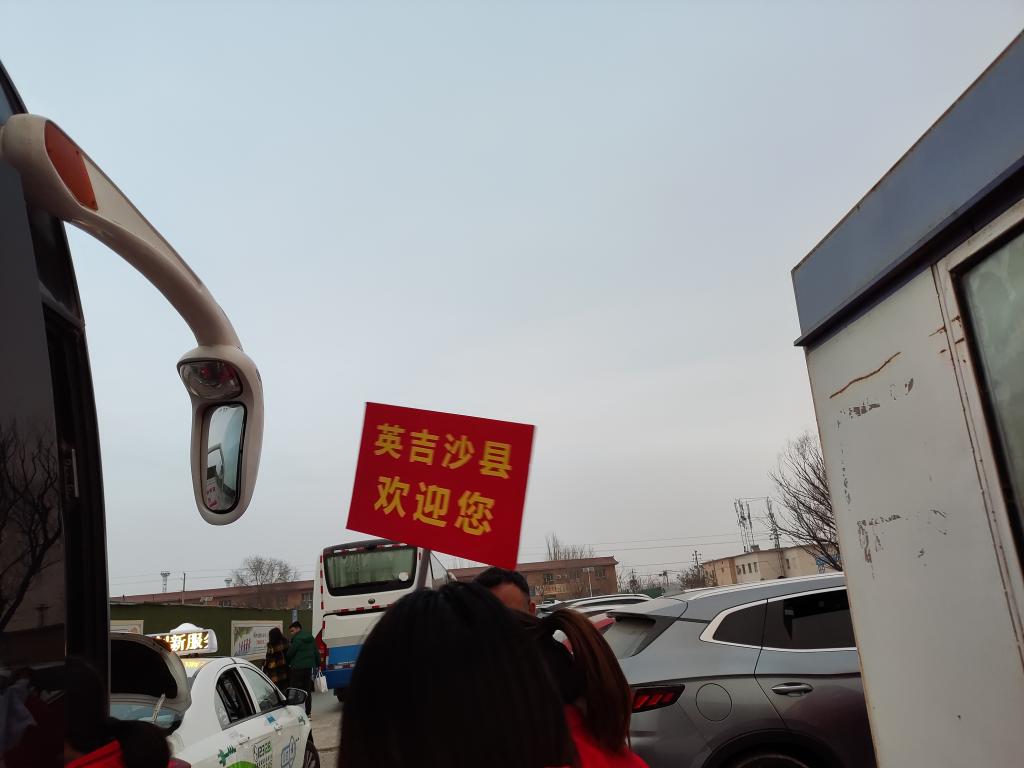 在火车上度过一夜香甜的睡梦,27日早,我们顺利到达了喀什站。踏着蒙蒙夜色,月光将我们的红色志愿服映衬得更加庄严,大家不约而同拿起手机记录下此刻的月色与激动的心情。在接站牌的指引下,我们顺利找到了耐心等待的英吉沙的工作人员,厚厚的保温箱里是他们精心准备的营养早餐,来自阿克苏的苹果,每一口都甜入人心,就像大家脸上的笑容,带着未知的欣喜与激动。