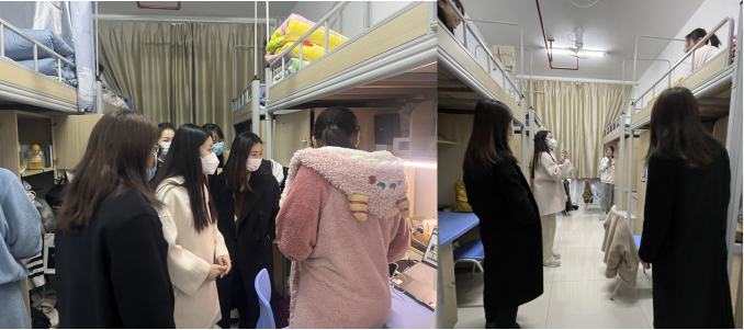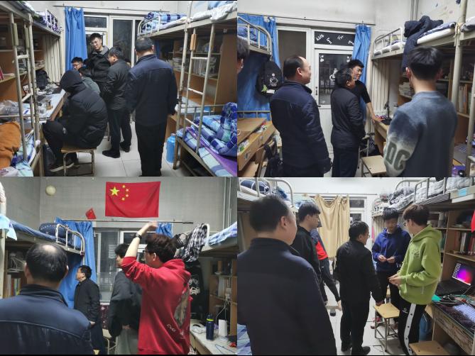 检查过程中,老师们详细查看宿舍的安全卫生情况,与同学们亲切交流,强调宿舍安全的重要性,引导同学们牢固树立安全意识,严格遵守学校的公寓安全管理规定和公寓日常管理规定,不存放使用违禁电器、易燃易爆物品等,做到房间无人时断水断电,最后离开人员随手锁门,要经常性开展安全隐患排查,保障人身财产安全。检查过程中,还了解同学们的身心健康、学习生活和夜间归宿情况,强调要按时返回宿舍。近期流感高发,提醒同学们日常养成良好的个人卫生习惯,保持宿舍干净整洁,勤通风,勤洗手,外出科学佩戴口罩。
