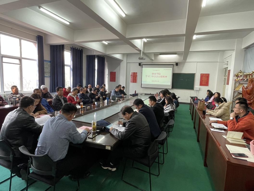 3月6日,体育学院组织全体教工集中学习《中共二十届二中全会公报》会议精神。