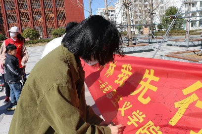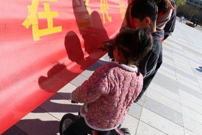 活动中,志愿者为同学们宣讲了现如今存在的环境问题,呼吁大家建设美丽校园,从身边的小事做起,保护花草树木、少用或不用一次性筷子、节约用纸等等,大家深刻了解到本次活动的意义,纷纷在横幅上签字,展现保护环境的决心。活动过程中,小小少年也意识到保护环境是每个人的责任与义务,用稚嫩的小手一笔一划在横幅上签上了自己的名字,加入到生态文明建设当中。环境保护人人有责、人人受益,只有人人参与,我们的生活才更加美好!