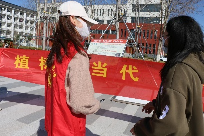生态兴则文明兴,为培养青少年的环保意识,积极践行绿色低碳的生活方式,在第45个植树节到来之际,马克思主义学院于广场餐厅前开展“植树在当代,护林我先行”植树节校园志愿宣讲活动。