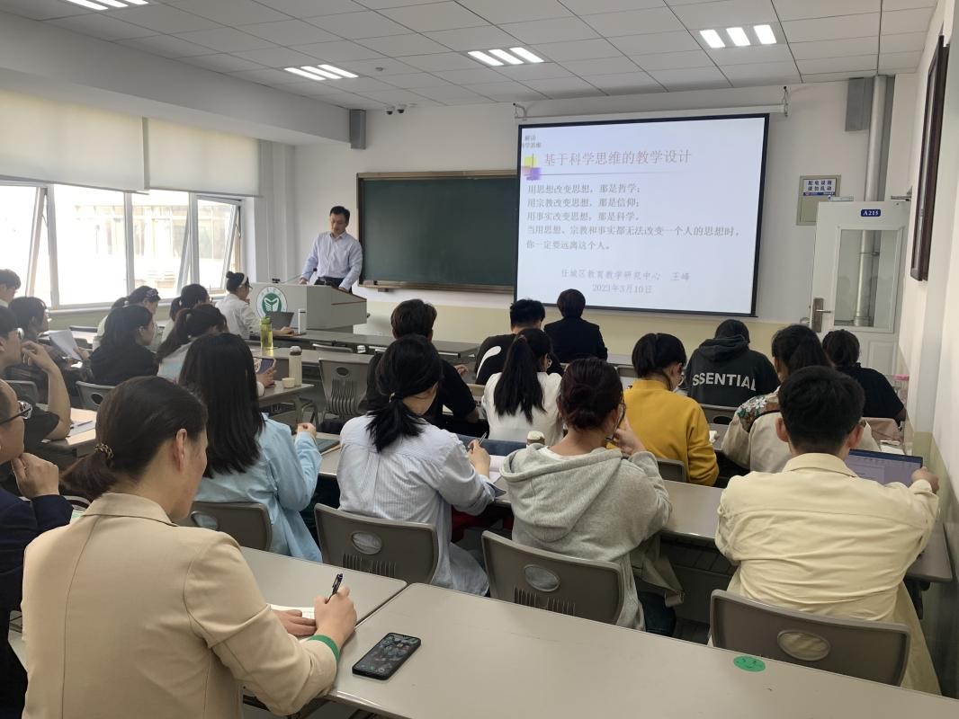 3月10日下午,物理科学与智能工程学院在9号楼A215教室举办物理学专业教育研习第五场报告会,济宁市任城区教育教学研究中心物理教研员王峰为2019级毕业班全体同学做了题为《基于科学思维的教学设计》的学术报告,物理学专业部分教师参加。