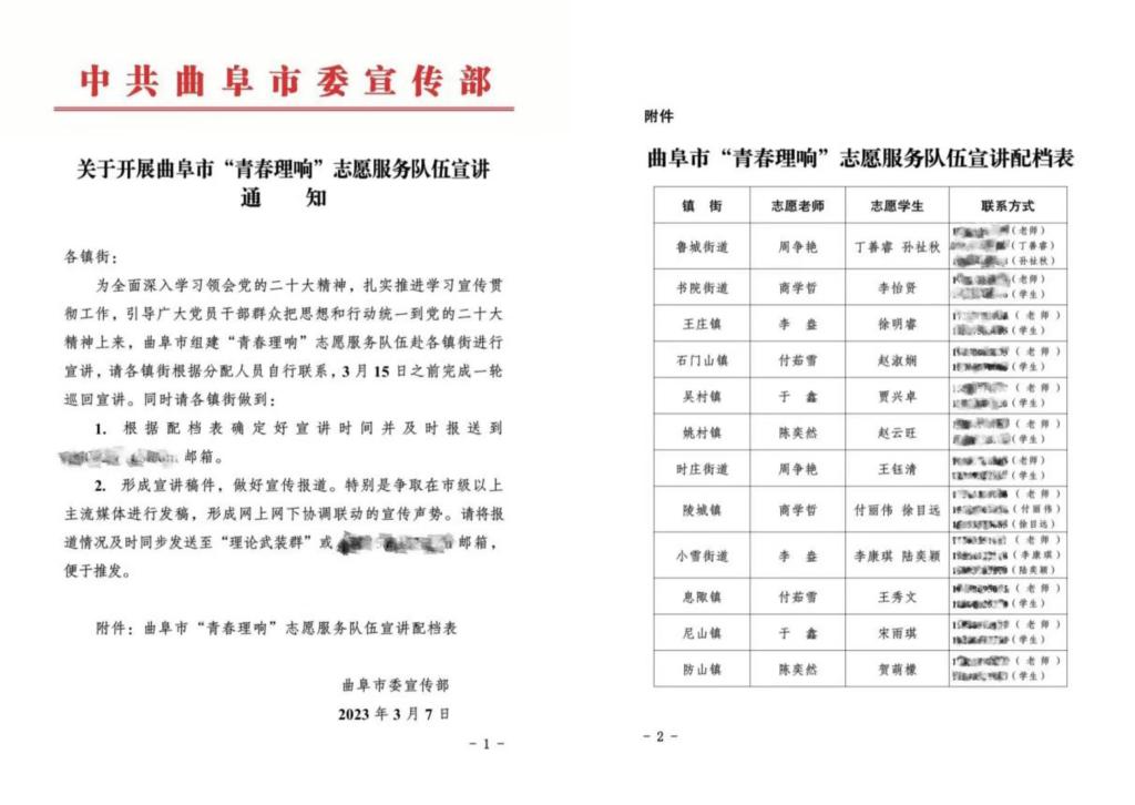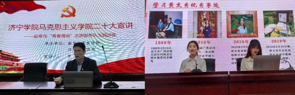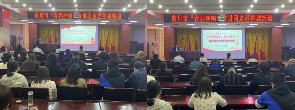 党的二十大科学谋划了未来一个时期党和国家事业发展的目标任务和大政方针,擘画了以中国式现代化全面推进中华民族伟大复兴的宏伟蓝图。为全面学习宣传贯彻党的二十大精神,引导广大乡镇干部以党的二十大精神为引领,扛牢使命责任,积极将学习成果转化为干事创业的强大动力,马克思主义学院在亚星在线登录官网团委、宣传部和曲阜市委宣传部的联合支持下,迅速组建曲阜市“青春理响”志愿服务队,积极为曲阜市各镇街、机关单位干部进行理论宣讲。3月8日至3月13日,马院师生奔赴各乡镇,开展了第一轮专题宣讲。
