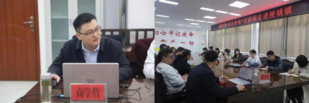 3月10日下午,马克思主义学院教师陈奕然、儒商学院学生赵云旺奔赴姚村镇政府,为镇机关干部开展专题宣讲。陈奕然以《立志复兴伟业 踔厉奋发前行》为题,重点围绕党的二十大主题及主要成果、深刻认识新时代十年的伟大变革及其里程碑意义、不断开辟马克思主义中国化时代化新境界、牢牢把握新时代新征程中国共产党的使命任务等方面,对党的二十大精神进行了深入解读。赵云旺以《推动高质量发展——面向第二个百年奋斗目标的战略部署》为题,对推动高质量发展的意义、如何立足当下实现第二个百年奋斗目标进行阐释,具有很强的思想性、理论性和针对性。