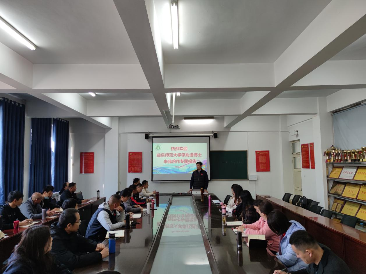 为进一步提升教师科研水平,营造有组织的科研氛围,3月13日上午,体育学院在二楼会议室举办首期高层次课题申报专题系列讲座。曲阜师范大学李兆进博士受邀作了题为“课题申请的五种境界”的专题报告。体育学院全体教师参加报告会,报告会由院长徐刚主持。